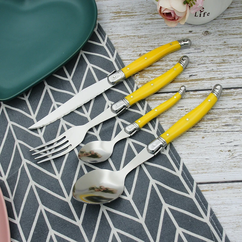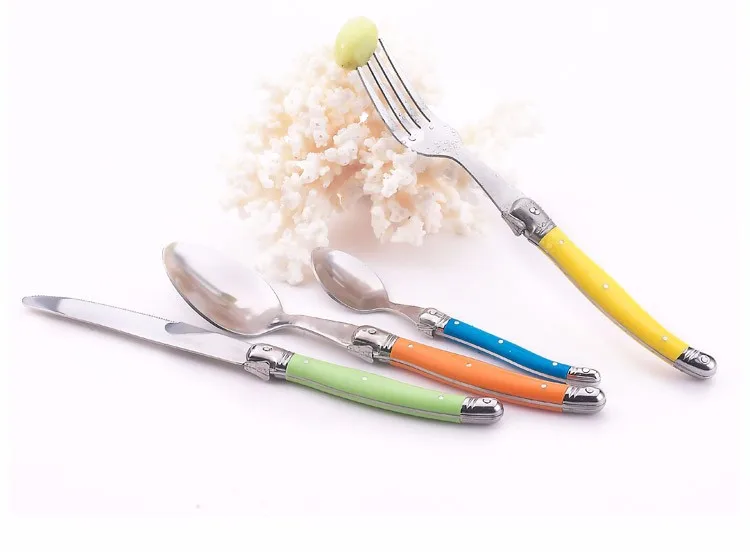 Стиль Laguiole набор столовых приборов из 24 предметов нож для стейка из нержавеющей стали вилка ложка с разноцветными ABS пластиковыми ручками набор столовых приборов хороший подарок