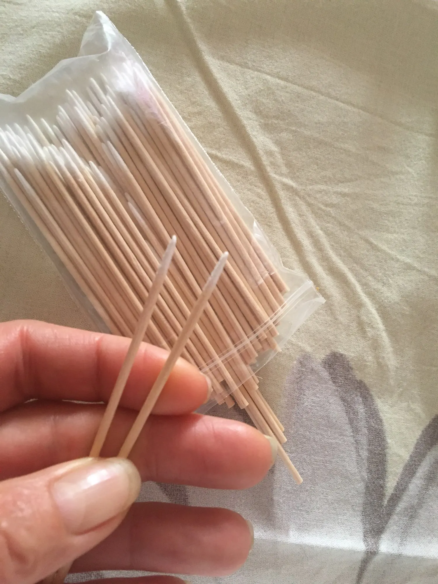 Острый на ухе, как зубочистки. Я думаю, что это подходит для исправления ошибок в макияже или для очистки узких вещей.