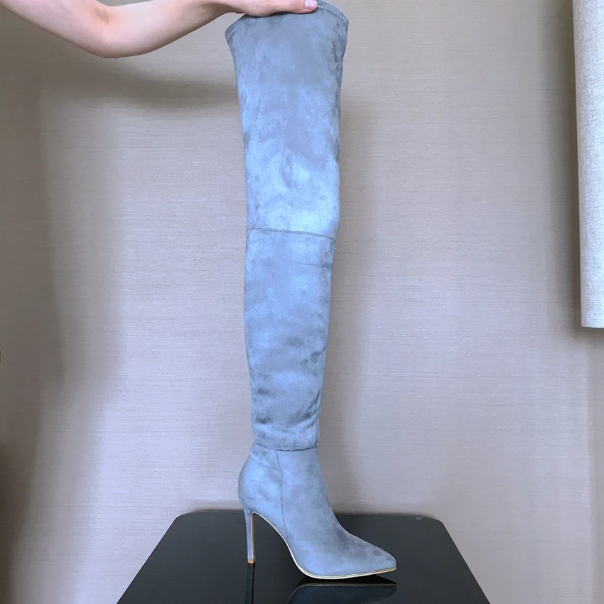 Сапоги выше колена на высоком каблуке 10,5 см женские эластичные высокие сапоги женские мотоботы Женская замшевая обувь зимняя обувь