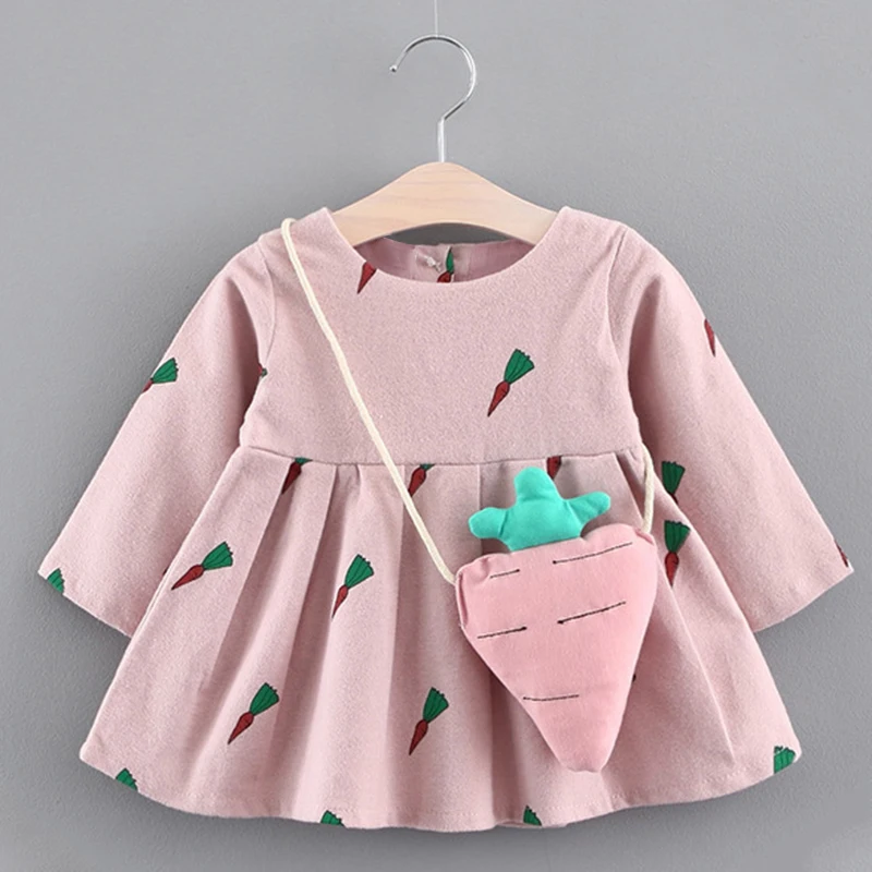 Детское платье в горошек, с длинным рукавом-фонариком и пуговицами