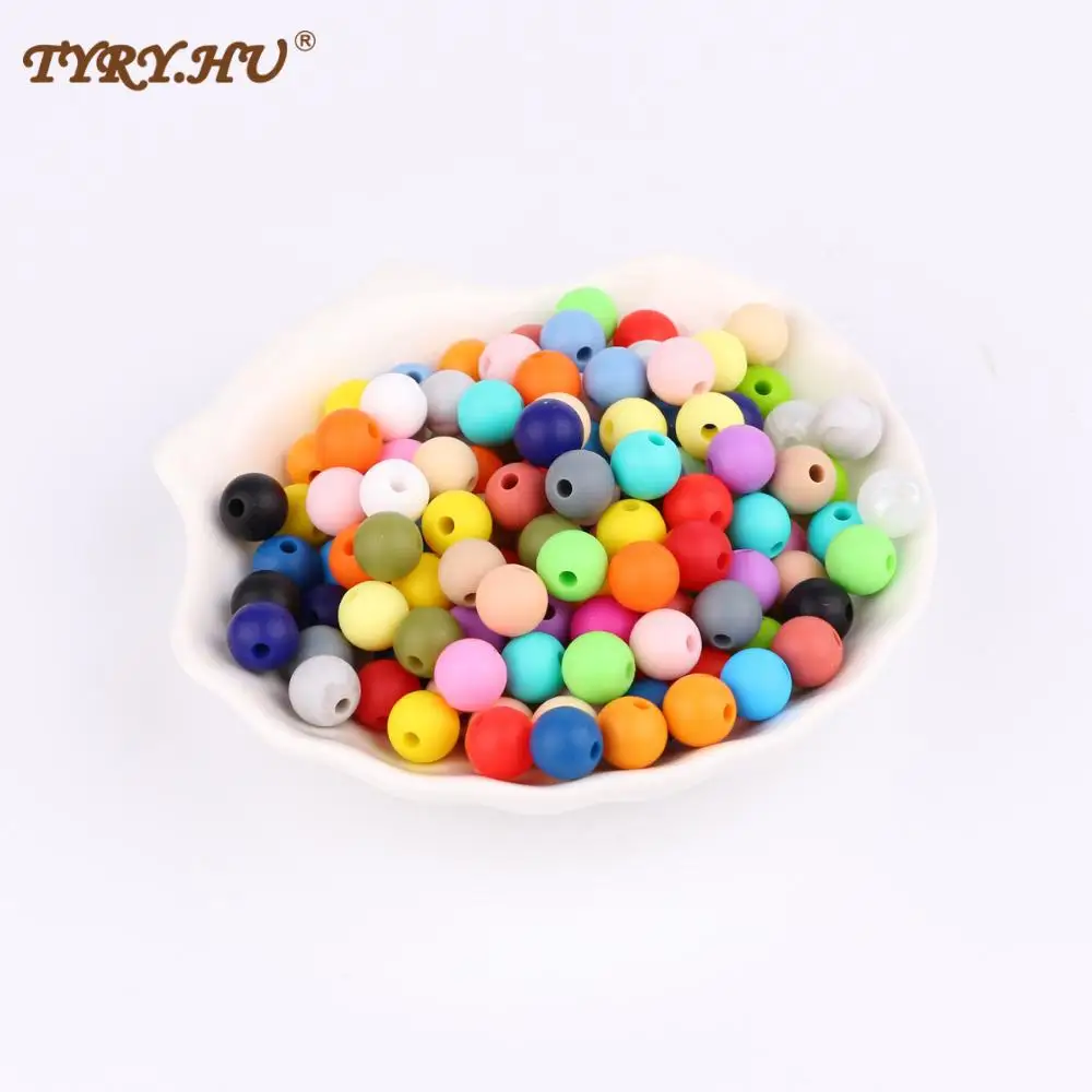TYRY.HU, 200 шт., силиконовые круглые бусины, 9 мм, бусы-грызунки для детей, цепочка для пустышки, не содержит Бисфенол А, Детские бусины для прорезывания зубов