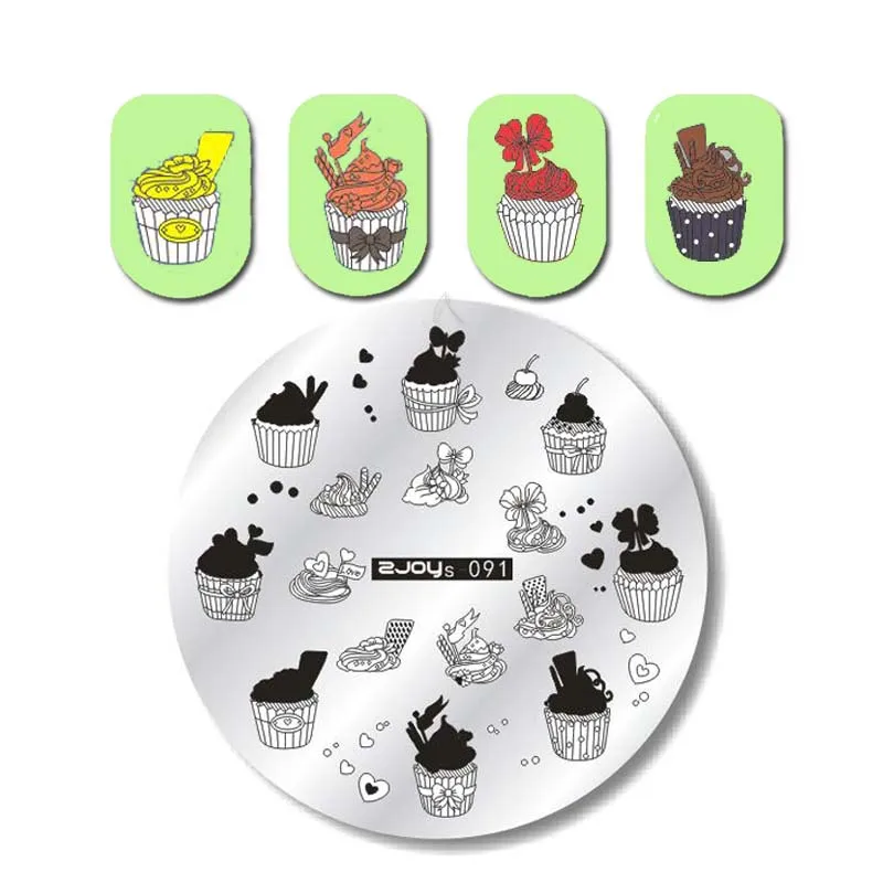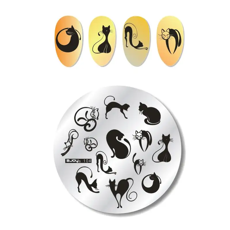 Трафарет Zjoy для стемпинга ногтей, 5,5 см, с изображением кота, рыбы, пера, рождественских цветов, для Хэллоуина, пластина для стемпинга для нейл-арта
