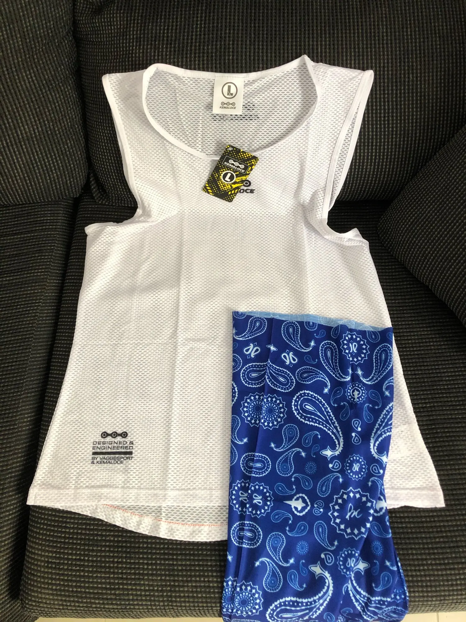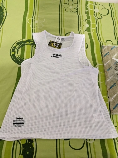 Llegó muy rápido, en tan solo 14 días, y me han regalado una braga de tela, perfecta para cuando refresque, la camiseta interior genial para la primavera o verano, en finita y transpira. Pedí una talla L y queda muy bien debajo del maillot.