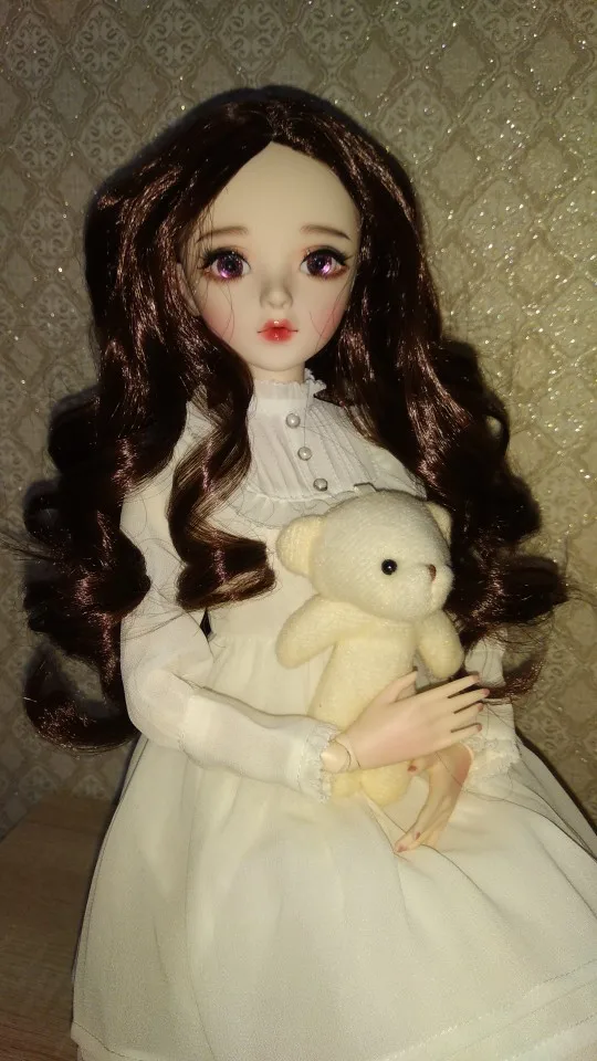 Милый парик! Этот парик очень мягкий и достаточно длинный, чтобы соответствовать моей высокой куколке длиной 69 см с окружностью головы 23,5 см. Цвет приятный, темно-коричневый. Хорошее качество по цене. Мне нравится. Доставка/Время доставки было довольно быстрым. Это действительно хорошая покупка. Я определенно рекомендую этого продавца. Спасибо, продавец!