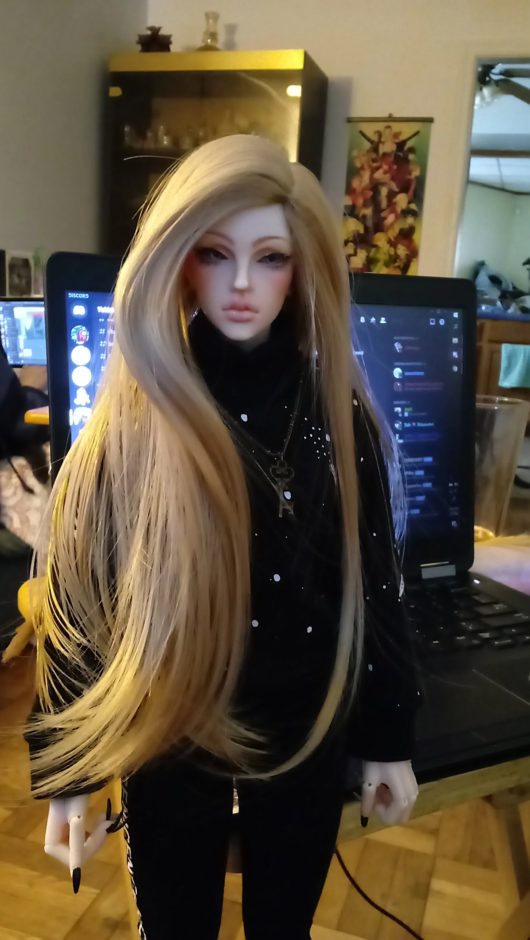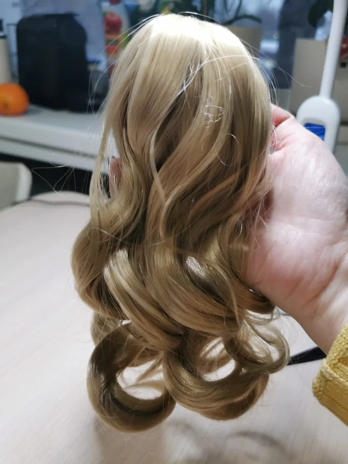 Парик понравился. Цвет именно такой, как и хотела. Однако не понравилось как завит. Я сделала все по своему. Сначала расчесала его, потом выпрямила утюжком, подстригла и обратно завила на термобигуди. Вот теперь результат меня устраивает.