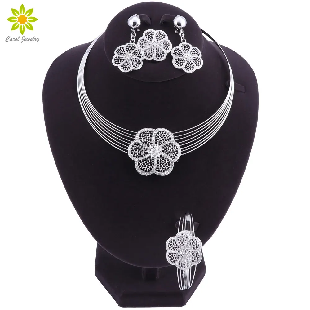 Старинные цветок из горного хрусталя кулон ожерелье серьги браслет кольцо набор посеребренный Африканский Свадебный костюм ювелирные наборы