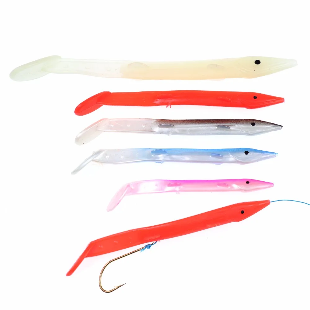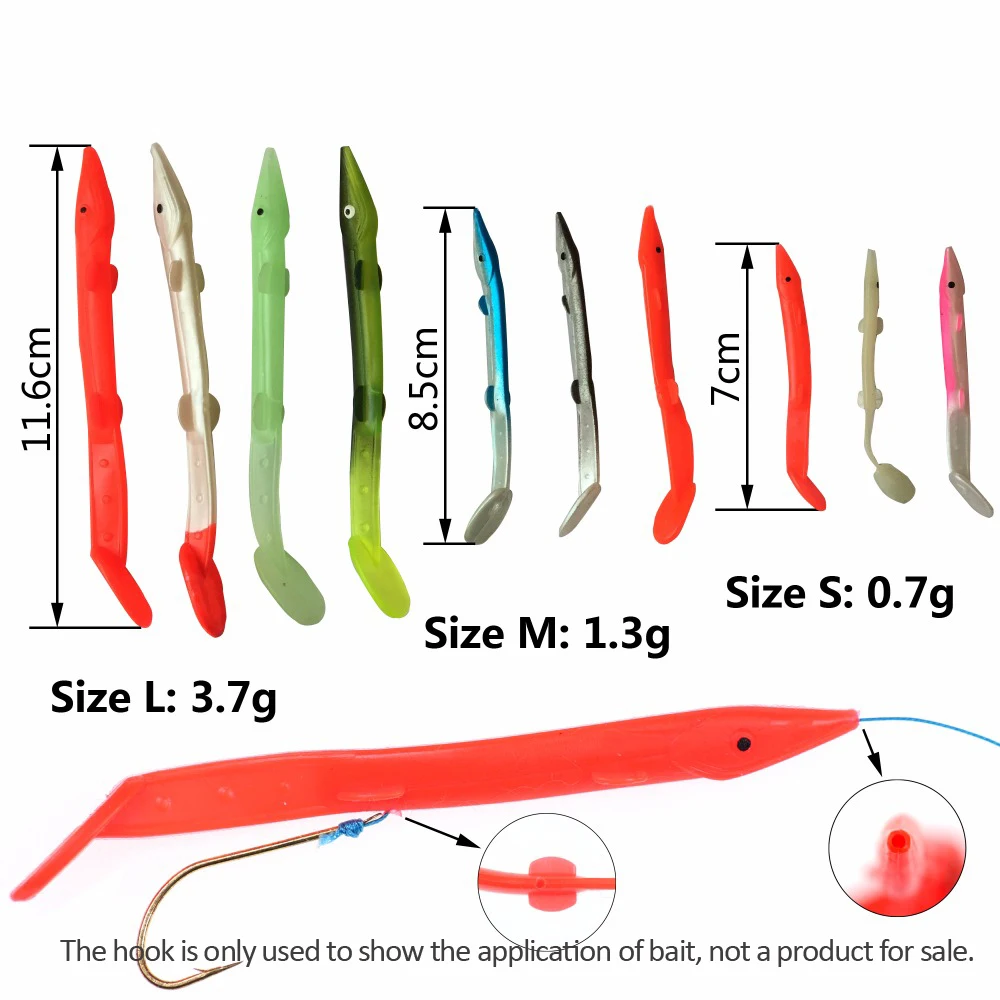 Bimoo 10 шт. Мягкая приманка для рыбы Sabiki Rig Eel Style Jelly морская Приманка для рыбалки Lumo White Lumo Green Red Pink Back Blue Back