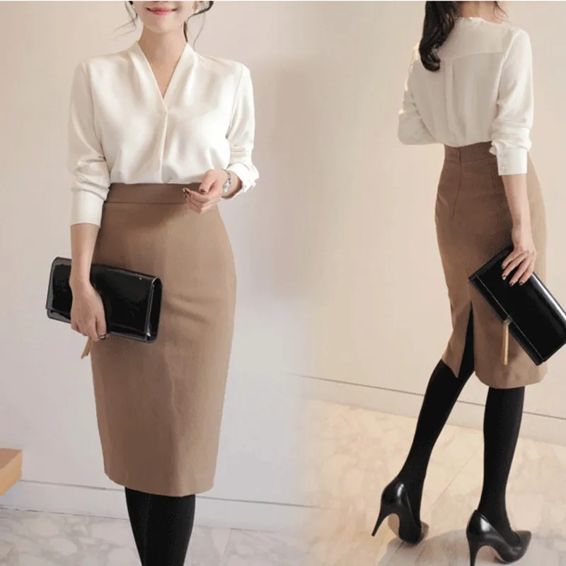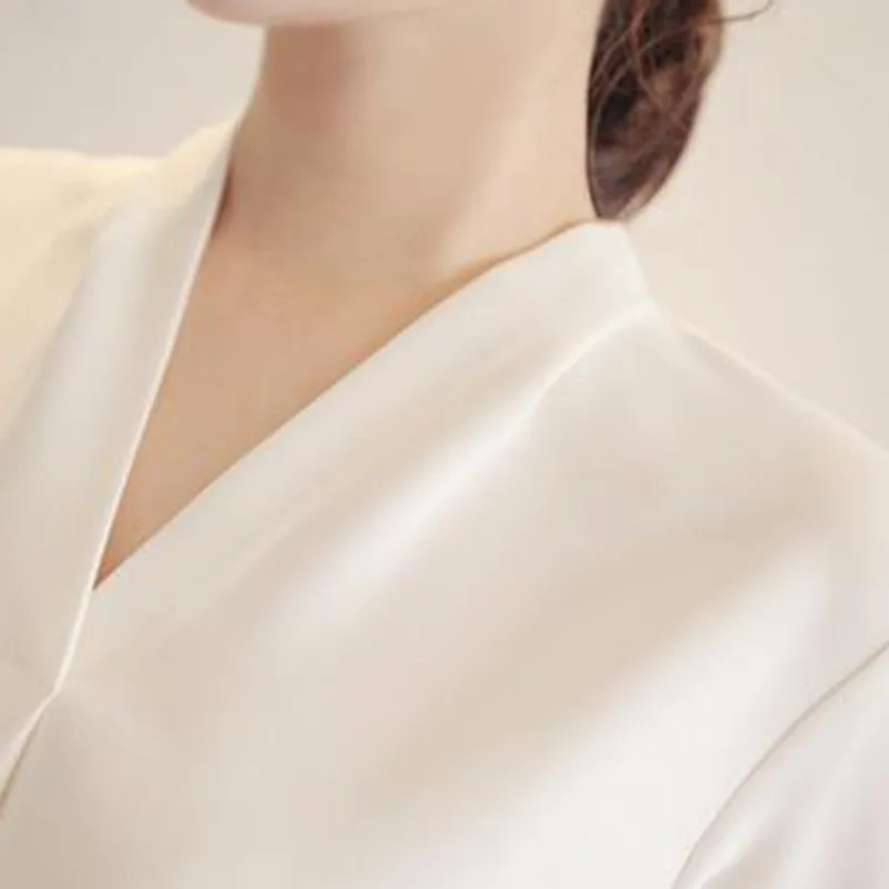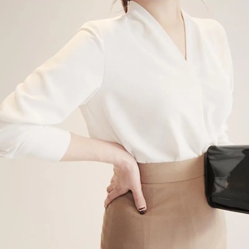 Женская шифоновая блузка с V-образным вырезом и длинным рукавом