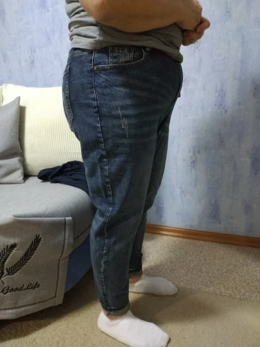 Джинсы женские рваные с завышенной талией, повседневные винтажные брюки-султанки, большие размеры, весна-осень XL-5XL