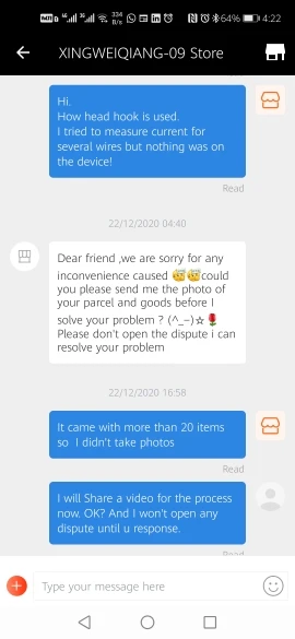 I've received the device in good condition. The problem it does not calculate the current, I've contacted the seller and he promised he would solve the problem and bagged not to open a dispute. When the dispute time done, the seller does not response anymore.