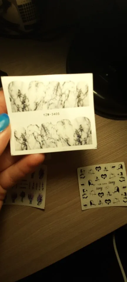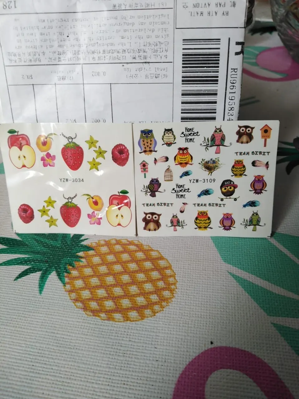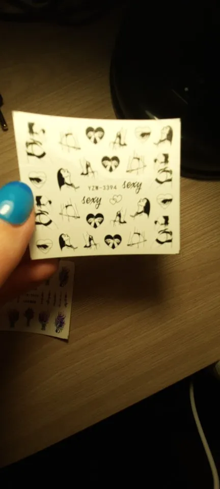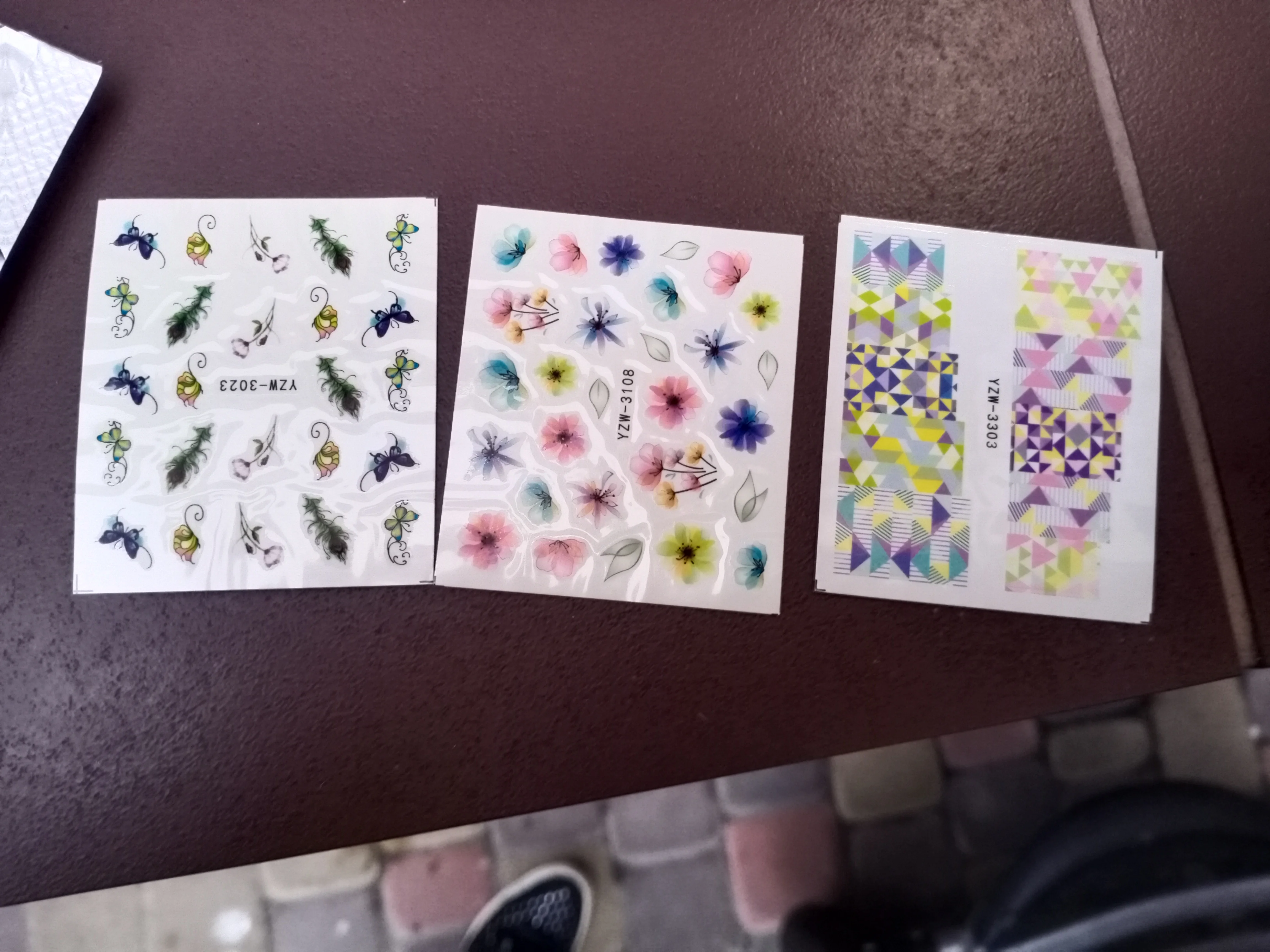 симпатичные стикеры, достаточно четкие, подойдут для обычного лака и для гель-лака. клеются неплохо, не разлазятся. быстрая доставка.