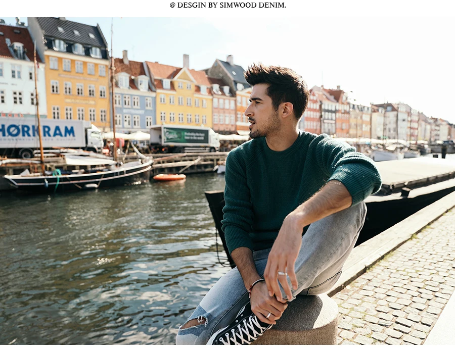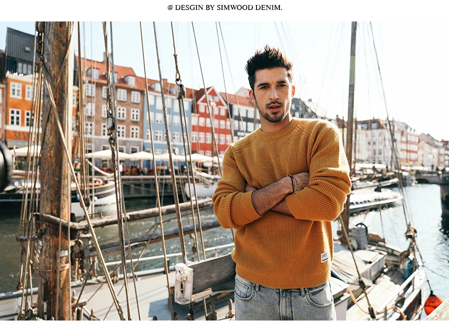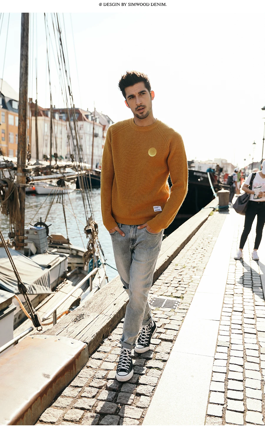 Мужской шерстяной свитер SIMWOOD, вязаный кашемировый свитер высокого качества на осень и зиму, 180369