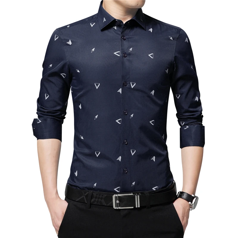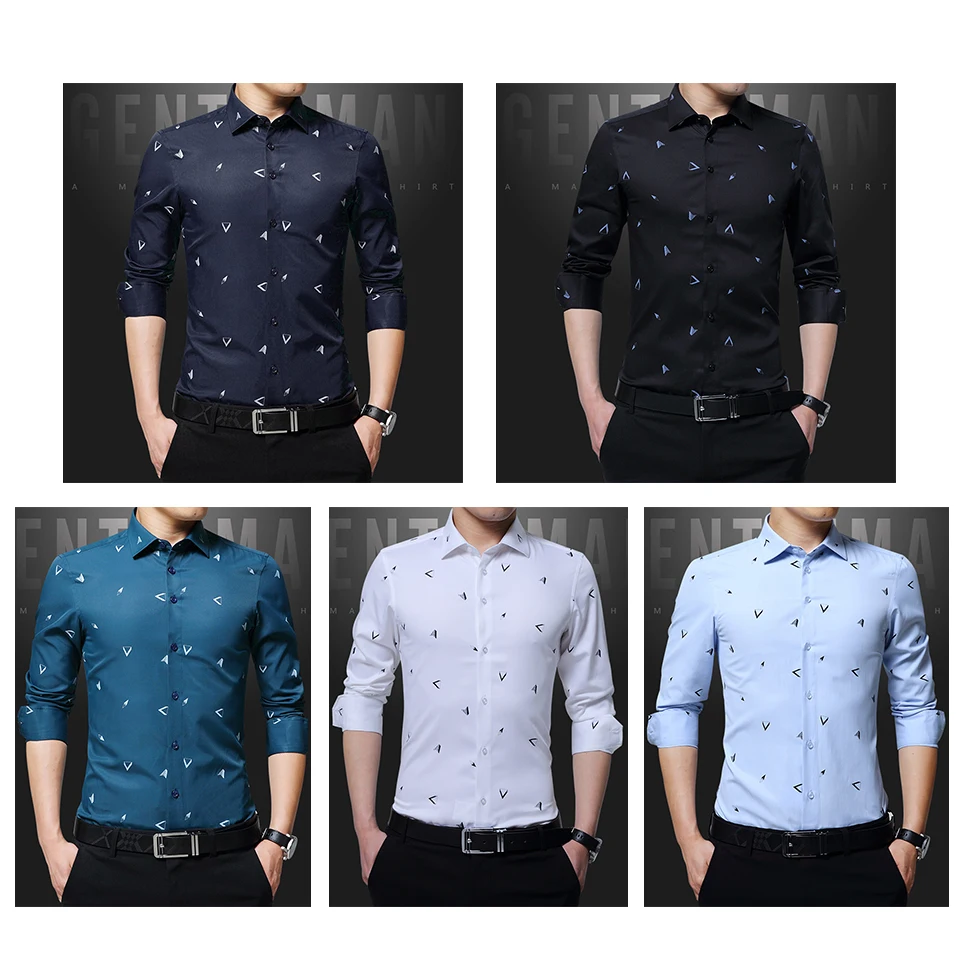 BROWON 2022 новые мужские рубашки с принтом Argyle жаккардовая деловая рубашка для мужчин с длинным рукавом обычный крой нежелезный корейский стиль