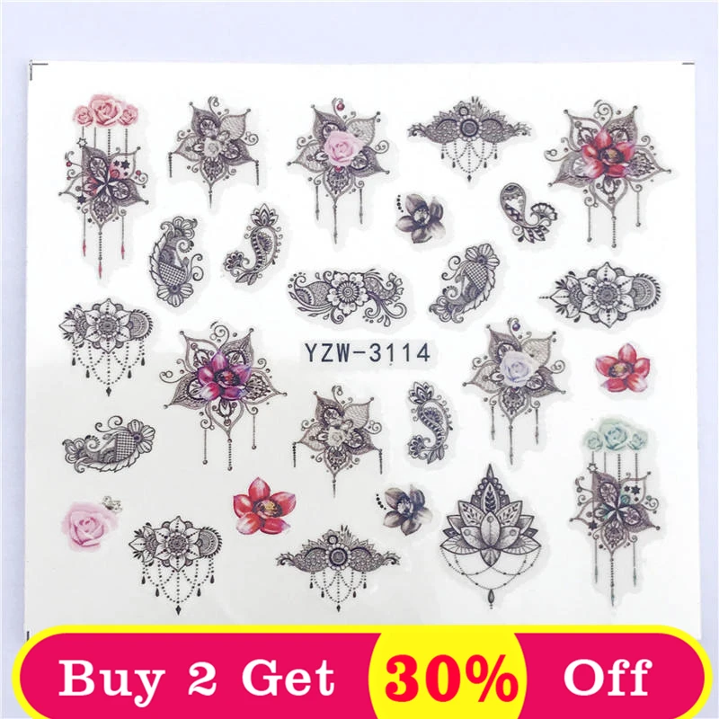 Модные наклейки для украшения ногтей и цветочным принтом в стиле сд...