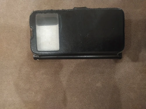 вполне приличный чехол из кож зама. дырка под фотик/вспышку прорезана нормально, засветов нет. есть колечко под ручку.