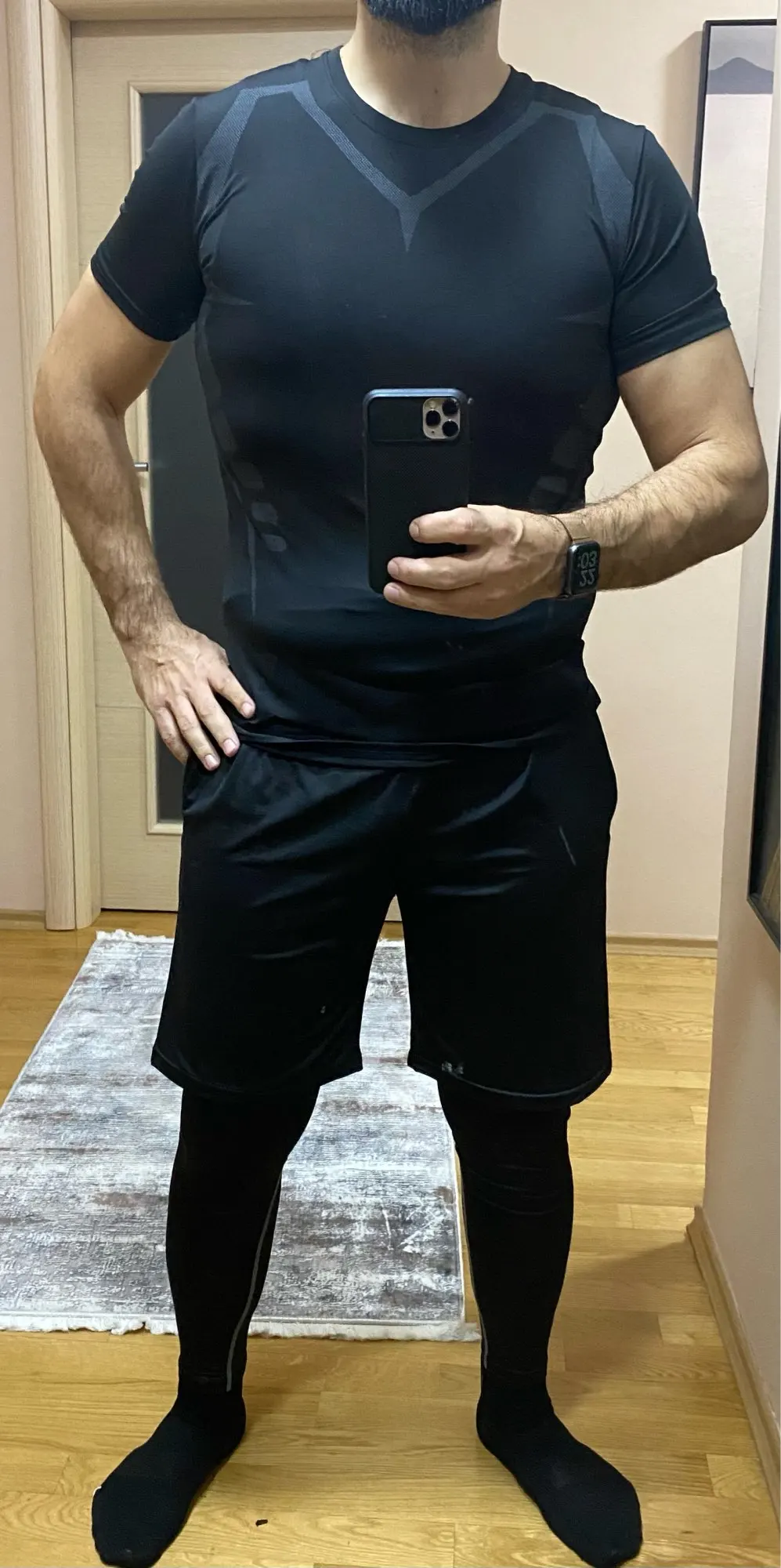 угадал с размером на мой рост 186 и вес 83, в самый раз, пришло быстро, думал шорты по плотнее будут, но все одной тканью сшиты
