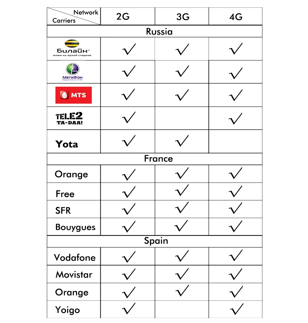 1. Убедитесь, что диапазон частот вашего перевозчика подходит для этого элемента. В противном случае устройство не может работать для вас. Если вы не можете очистить частоту своего телефона, вы можете нажать на эту ссылкуWww.frequencycheck.comДля проверки диапазона частот ваших перевозчиков.Ниже приведены Частотные полосы некоторых стран для вашей справки.