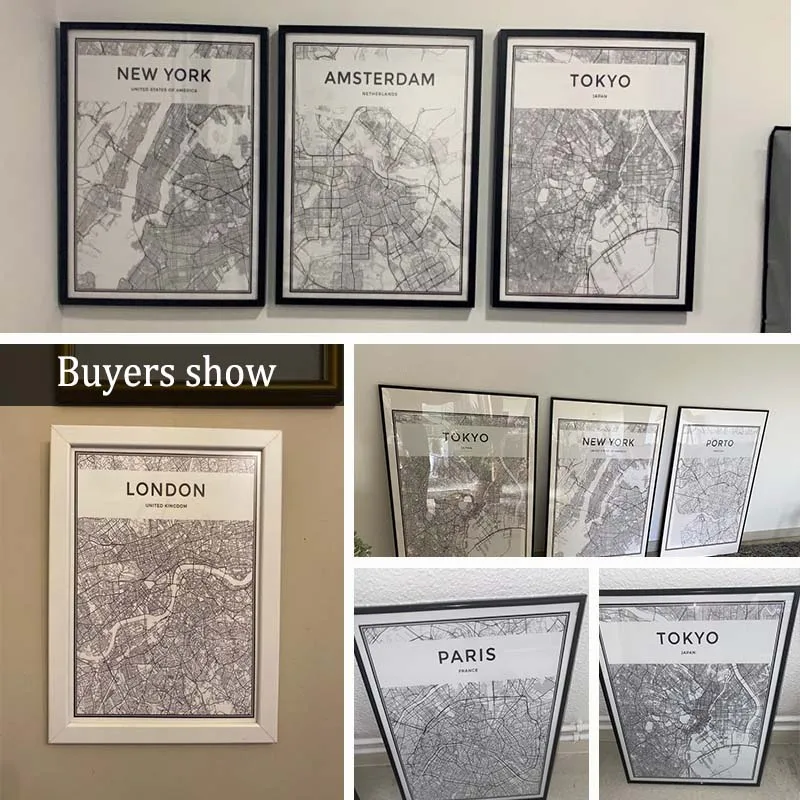 Картина черно-белая для гостиной, карта городов мира, Нью-Йорк, Токио, Париж