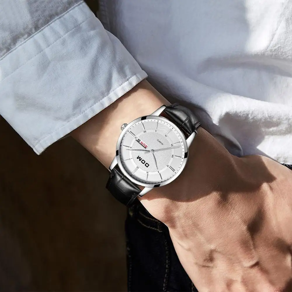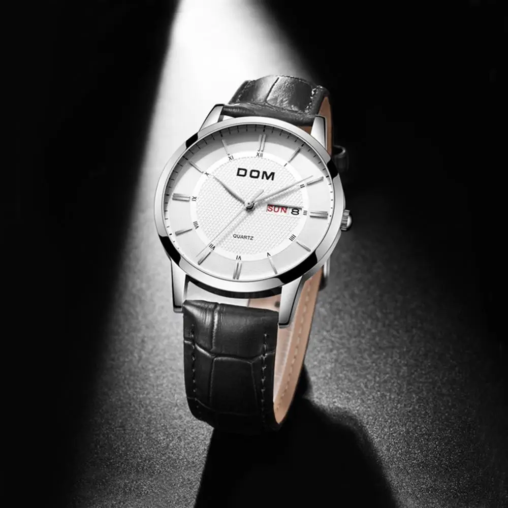 DOM модные кварцевые часы мужские роскошные брендовые водонепроницаемые мужские наручные часы с кожаным ремешком Мужские часы 2018