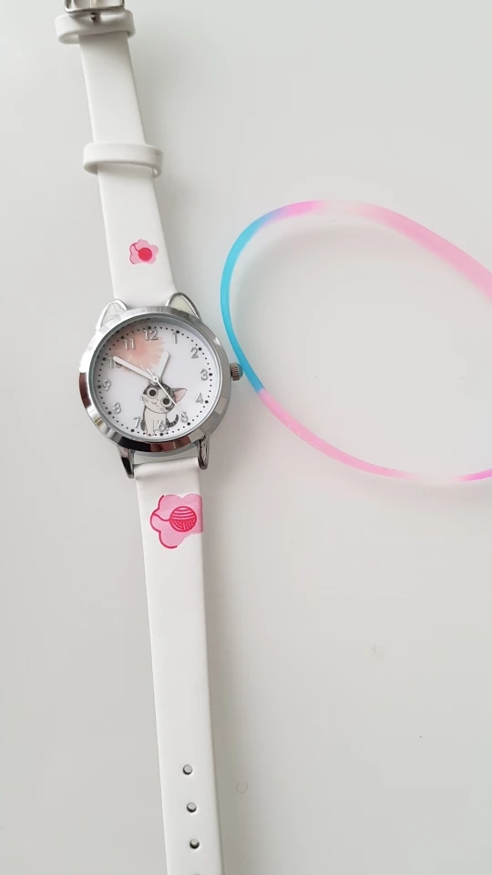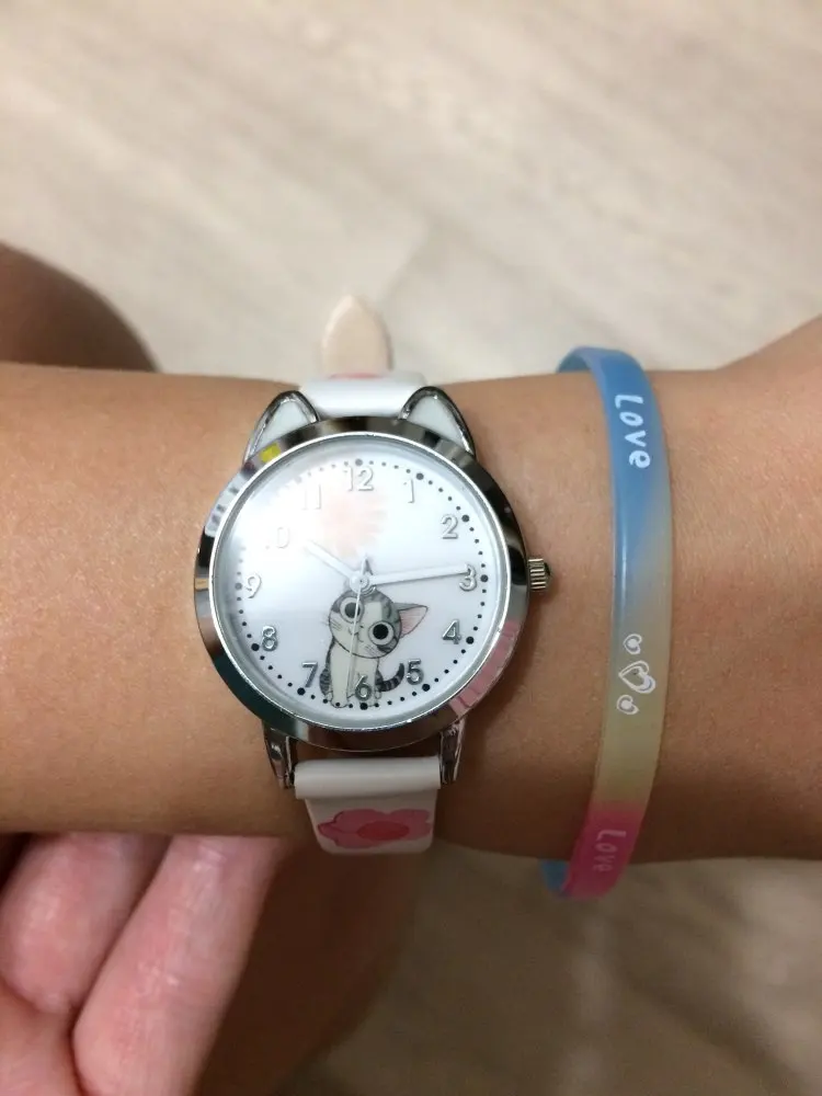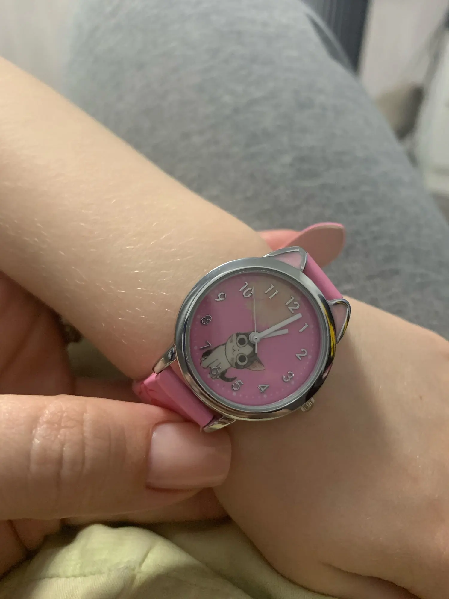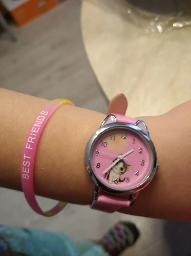 Очень милые часы. Рабочие. Подходят и на взрослую руку. Ребенку придется делать дополнительные дырочки в ремешке.