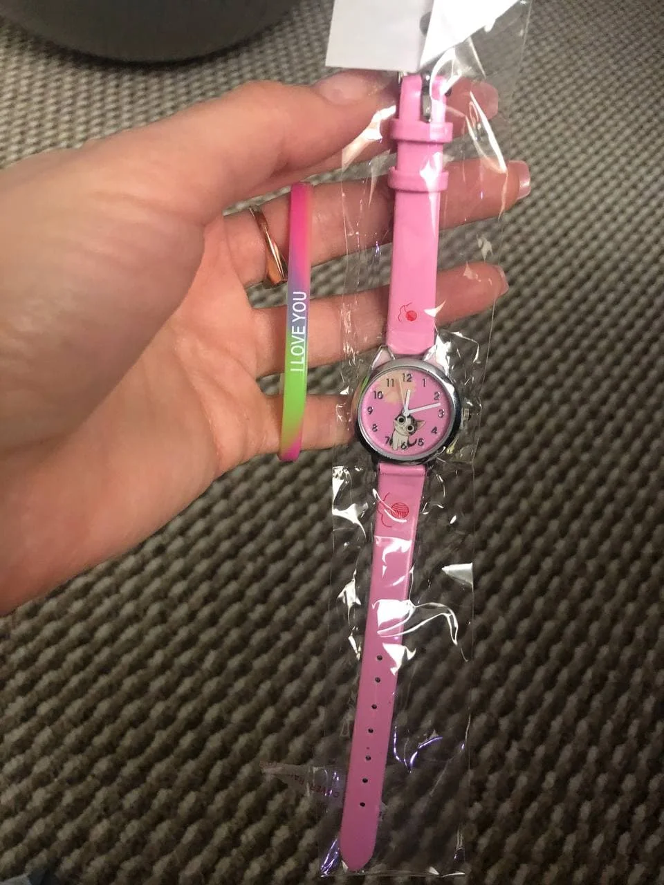 Быстрая доставка. Часы стоят своих денег, симпатичные - ребенку очень понравились. Продавец ещё положил маленький подарочек - наклейки. Было приятно
