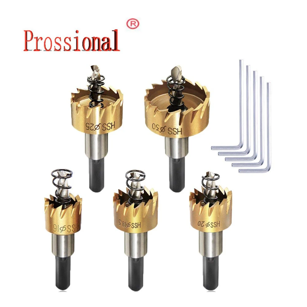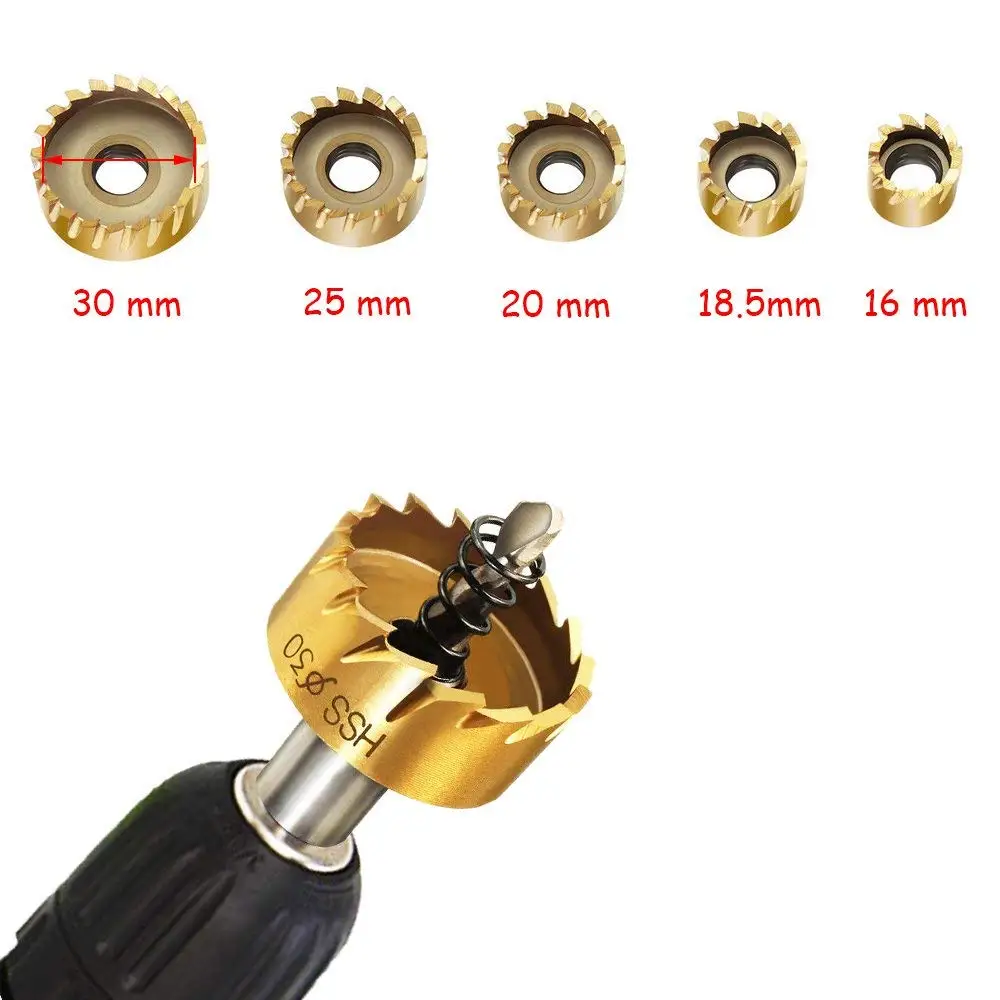 Набор металлических сверл для сверления отверстий, 5 шт., набор для сверления отверстий по дереву, инструмент для резки отверстий для установки замков 16 мм18,5 мм20 мм25 мм30 мм