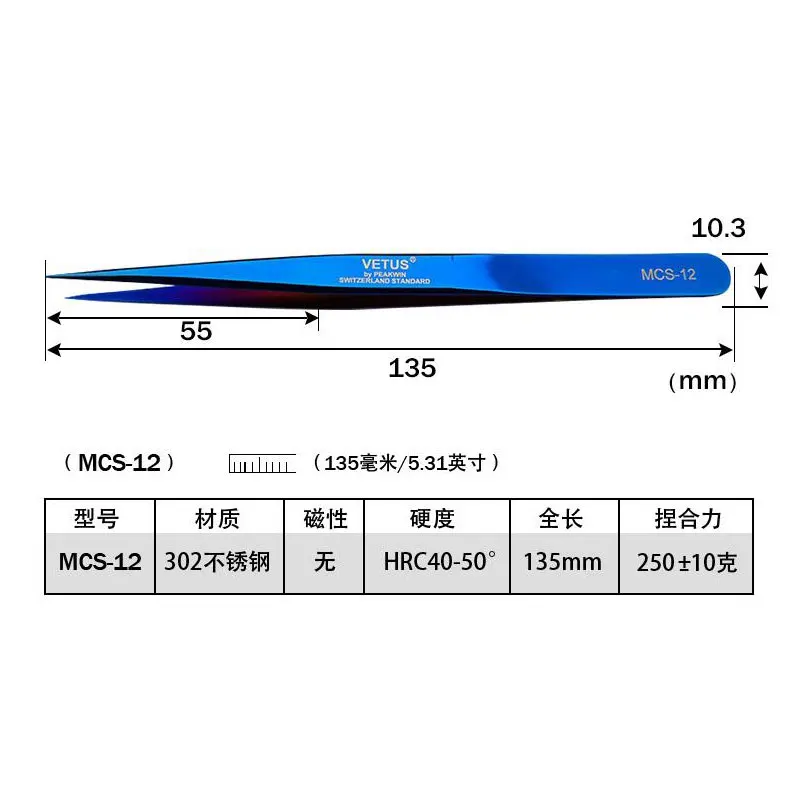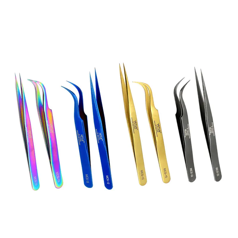Пинцет VETUS из нержавеющей стали для наращивания ресниц, Антистатический пинцет для объемных ресниц объемом 6D, пинцет для макияжа и бровей