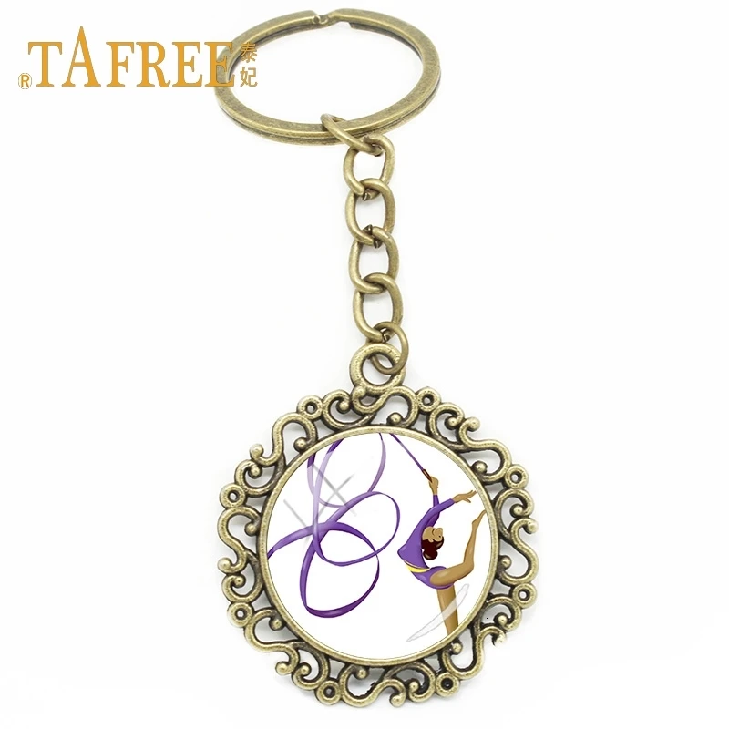 TAFREE винтажная любовь гимнастика полые искусственные антикварные бронзовые покрытые ювелирные изделия ручной работы стеклянный купол брелок аксессуар GY205