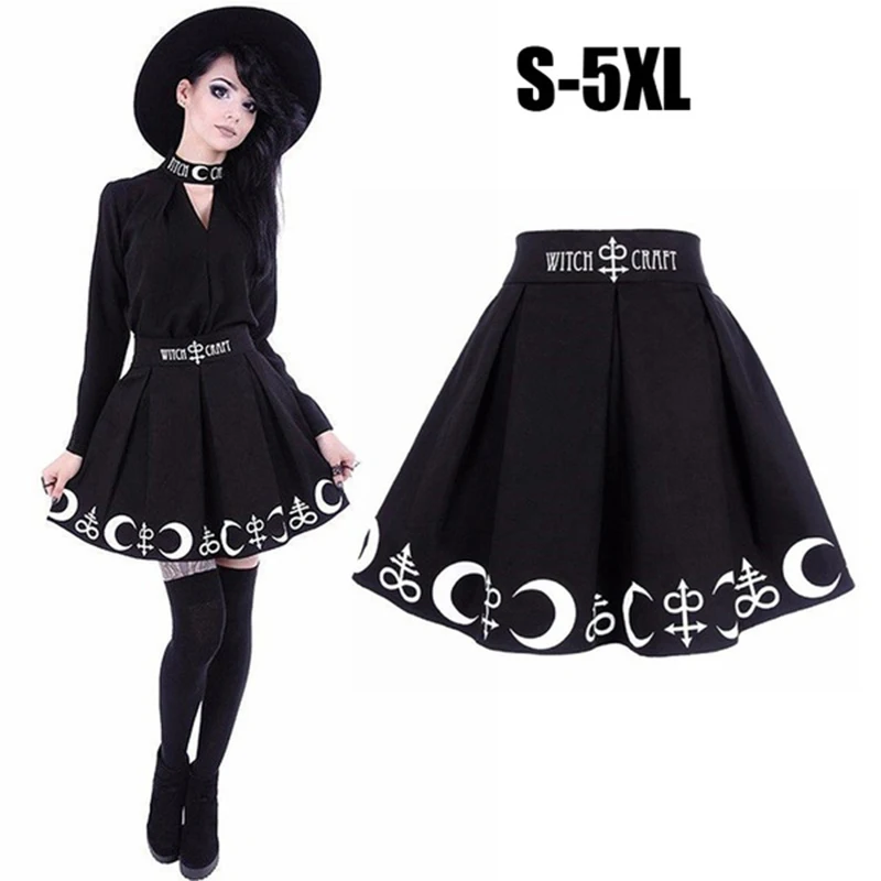 Женская готическая юбка, черная плиссированная юбка больших размеров с изображением Луны и оккультного символа колдуна, S-5XL