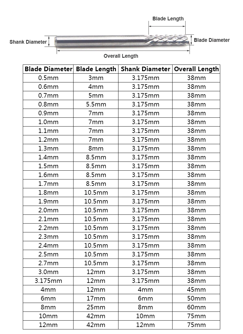 Карбидная Вольфрамовая фреза Drillforce, стандартная фреза 0,5 мм-12 мм, Фрезы с ЧПУ для гравировального станка