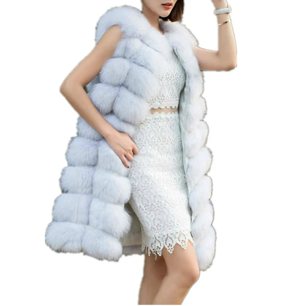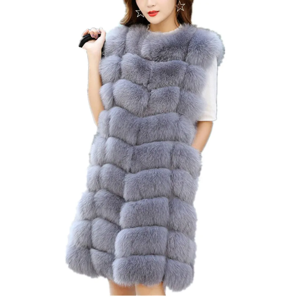 Женский меховой жилет Lisa Colly, длинный меховой жилет из искусственного меха лисы, зима 2019