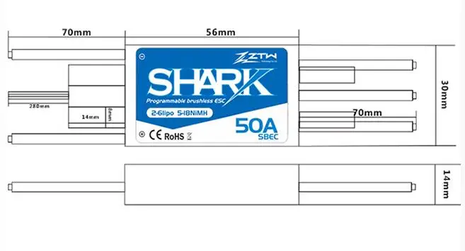 ZTW Shark 50A BEC водонепроницаемый бесщеточный ESC для лодки с системой водяного охлаждения RC модель лодки