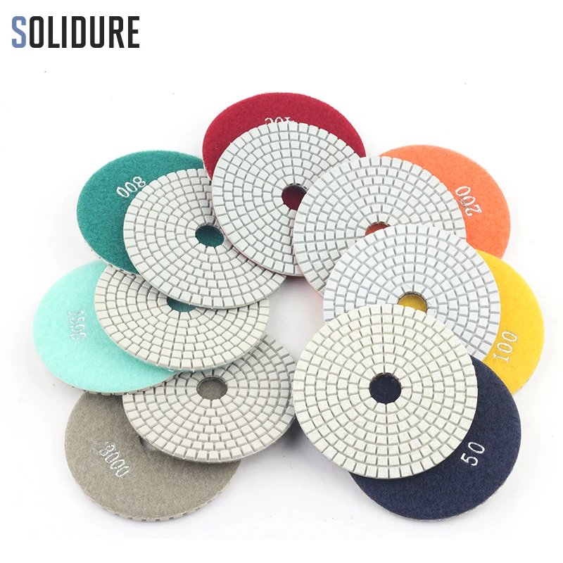 Алмазные диски для сухой и влажной полировки, 3-5 дюймов, 100 мм, предназначены для сухой и влажной полировки гранита и мрамора. Более крупный алмаз, зернистость 50-3000 обеспечивает больше остроты для удаления клея и отгрузок на поверхности камня
