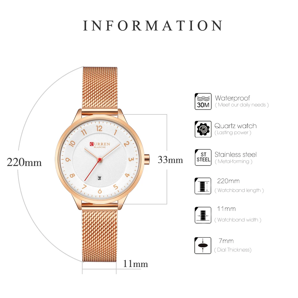 Часы CURREN женские, модные, кварцевые, розовое золото