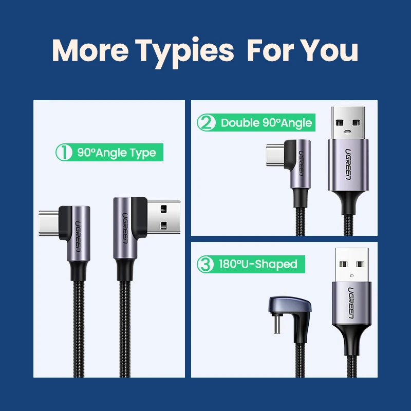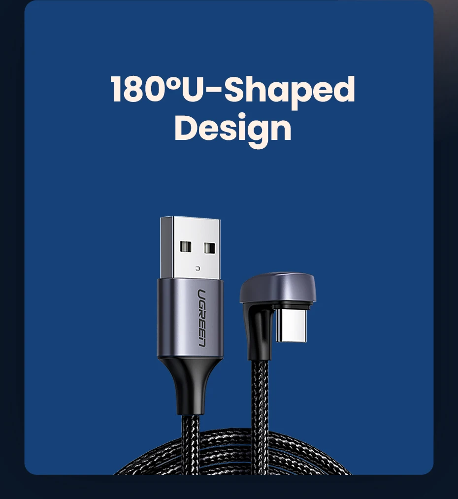 Кабель Ugreen USB-Type C для телефонов Android, угловой, 3A, 0.5-2 м