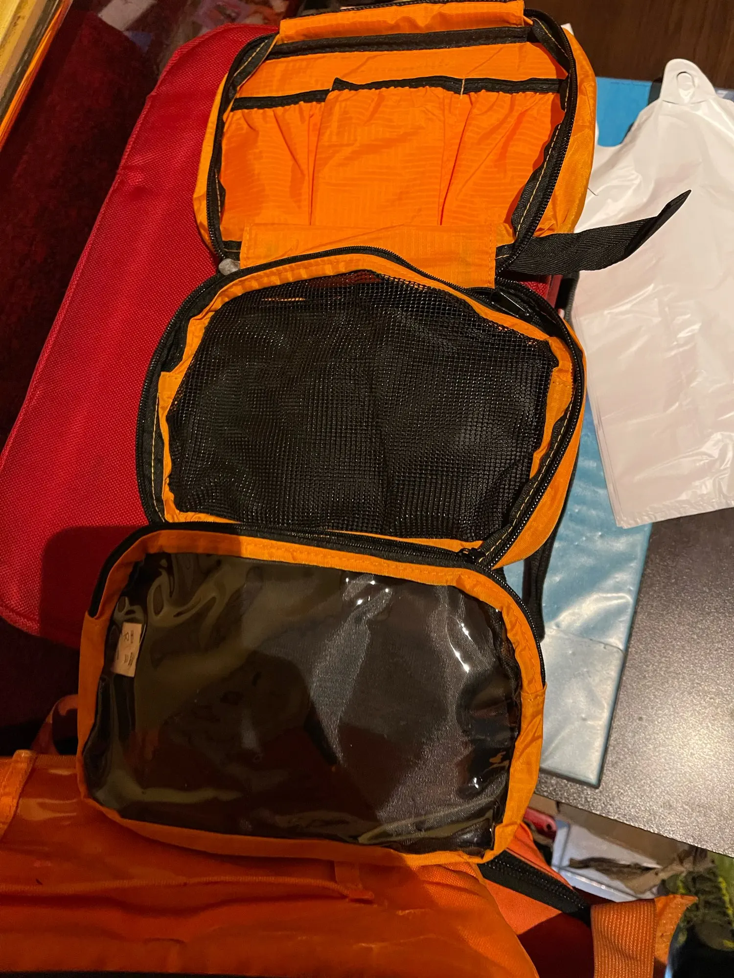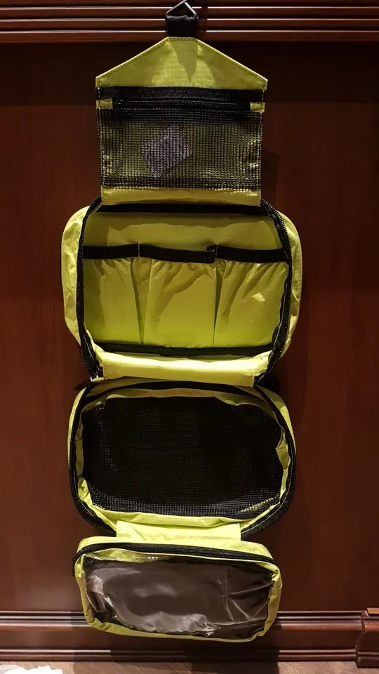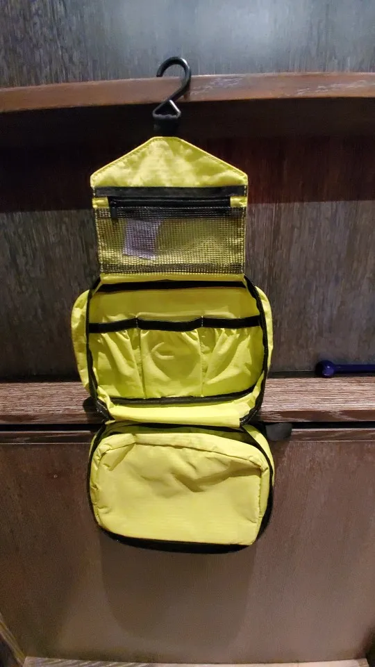 Отличная походная сумка. Можно положить мыльно-бритвенные принадлежности, а также паувербанк, провода и прочие принадлежности, которые должны быть под рукой, а потом повесить в палатке или в избушке, и все нужное всегда будет под рукой. Пришло быстро, качество строчки и материала хорошее. Продавца рекомендую!