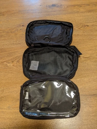 Отличное качество, Я впечатлен. Он подходит ко всему на фотографиях, и все еще много места! Конечно, все зависит от размера путешествия, вы не можете поместить здесь обычный дезодорант :) Большое спасибо, и я рекомендую его всем. Посылка была доставлена в Польшу очень быстро.