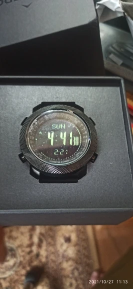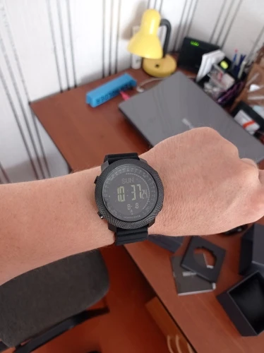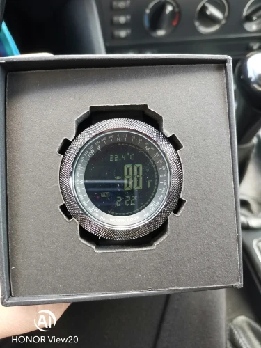 Часы дошли за 2 недели, что довольно быстро. Как часы - претензий нет, идут точно. Точность измерения давления - в пределах 1%. Очевидно, с той же точностью измеряют высоту. Шагомер невозможно обнулить - сброс происходит только в 24:00, что существенно сужает область его применения. Функционал компаса довольно странный и подразумевает пляски с бубном, чтобы чего-то увидеть. В общем, эта функция отпадает и на неё ориентироваться не стоит. В описании на русском есть предупреждение: "Важно! Часы имеют водостойкость 5 АТМ, это значит, что вы можете их мочить и плавать на поверхности не больше 30 минут, нырять и погружать под воду в часах нельзя!!! Рекомендация! Не нажимайте под водой кнопки!!!". Таким образом, заявленная водостойкость в 50м не соответствует действительности, имейте это в виду!