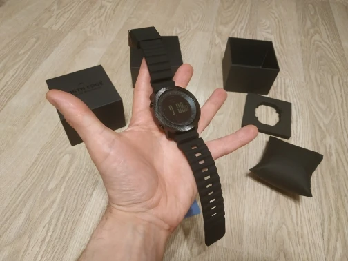 Часы заказал с дополнительным ремешком, резиновый и нейлоновый. Ремешки короткие, если рука широкая едва хватит. Нейлоновый ремешок полная хрень. В описании неточно указано какие ремешки отправляются. Задняя крышка не отшлифована. Корпус высокий, механизм намного тоньше. Часы подкупили ценой и схожими функциями с suunto core, но это как небо и земля. В общем если хотите часы на долго и получать от них удовольствие, то не стоит покупать.