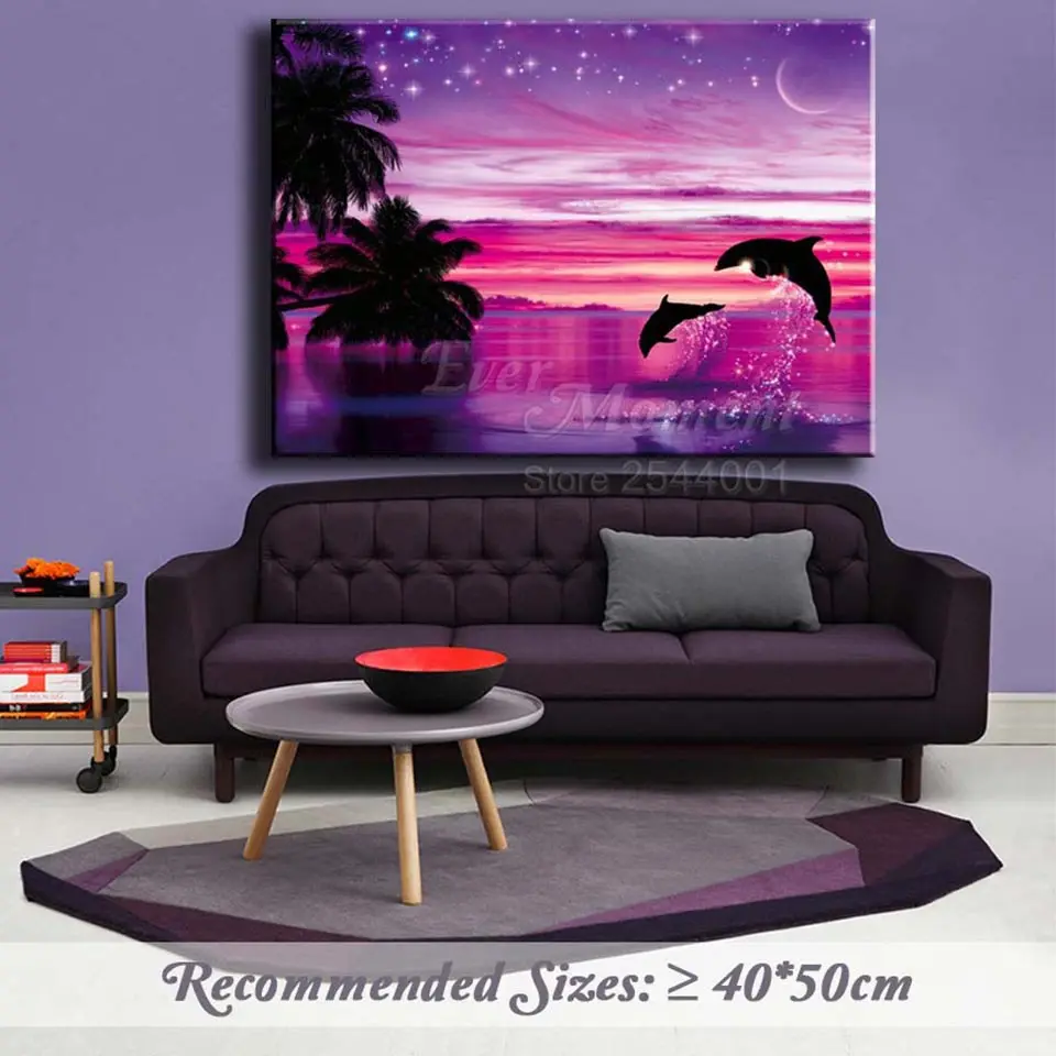 Алмазная живопись с изображением красивого дельфина, фиолетовый пейзаж, алмазная вышивка, Полная работа, стразы ASF1064