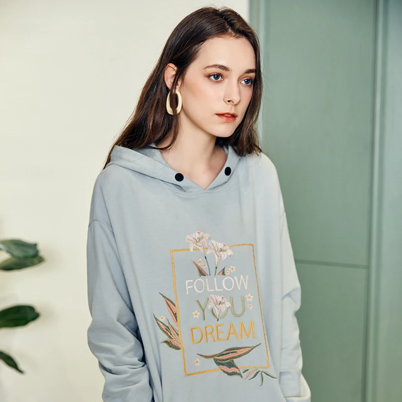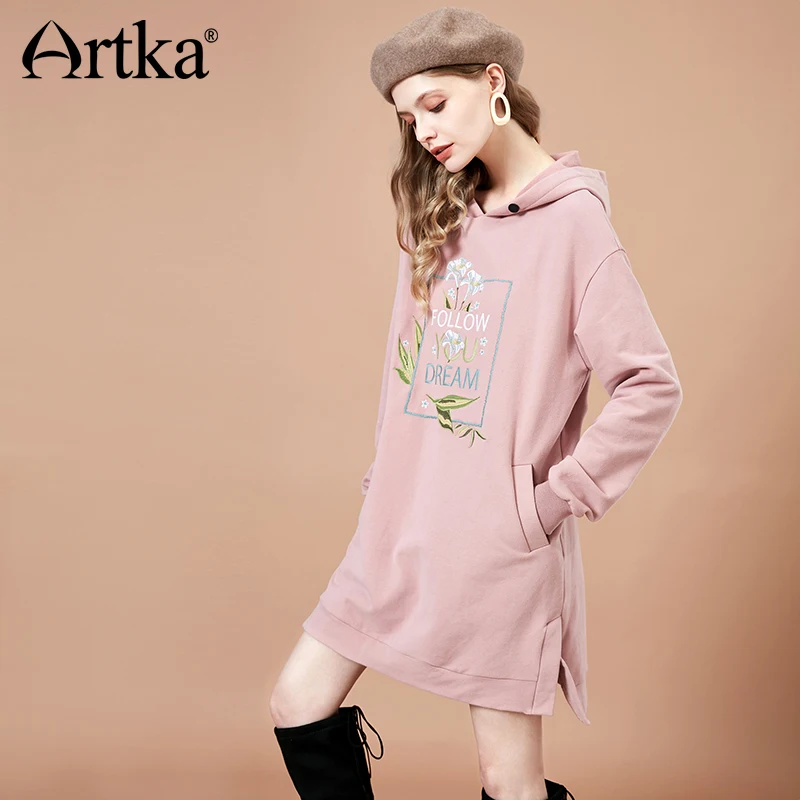Женский Повседневный пуловер ARTKA, свободный Универсальный пуловер с капюшоном и вышитыми буквами, с длинным рукавом, VA15180Q, Осень-зима 2018