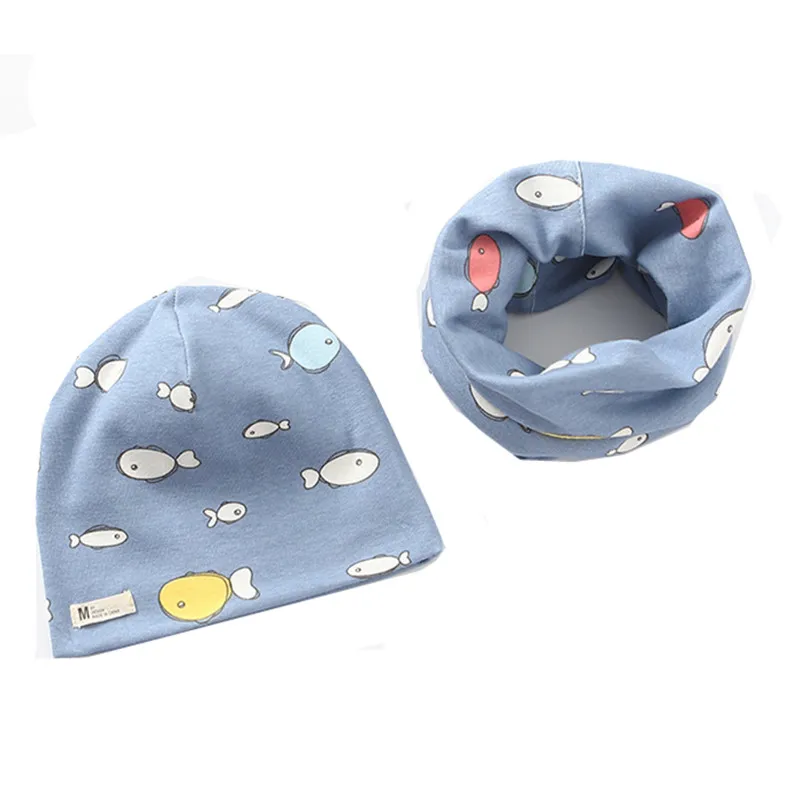 Весенне-осенний хлопковый Детский комплект с шапочкой и шарфом для ...