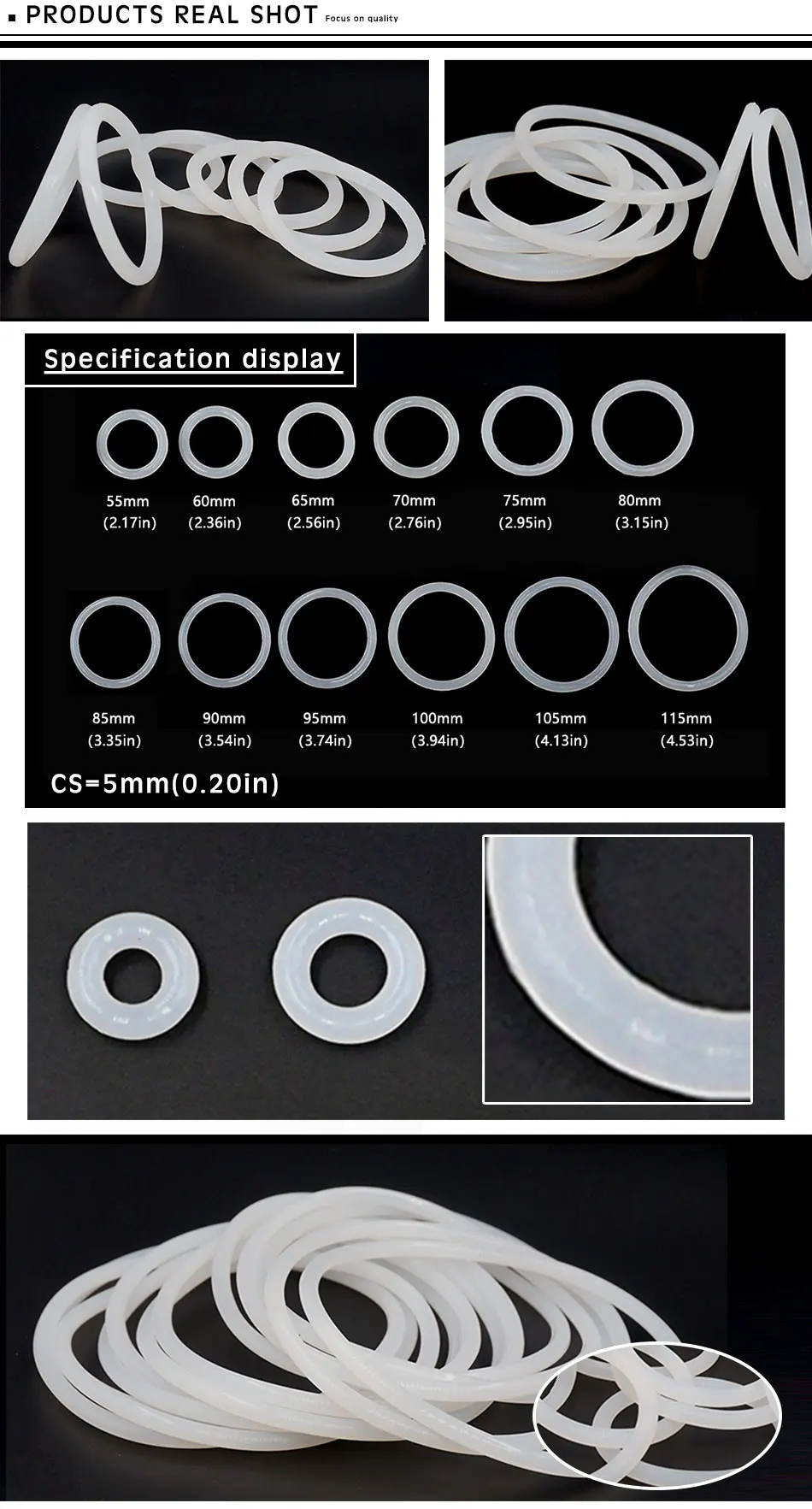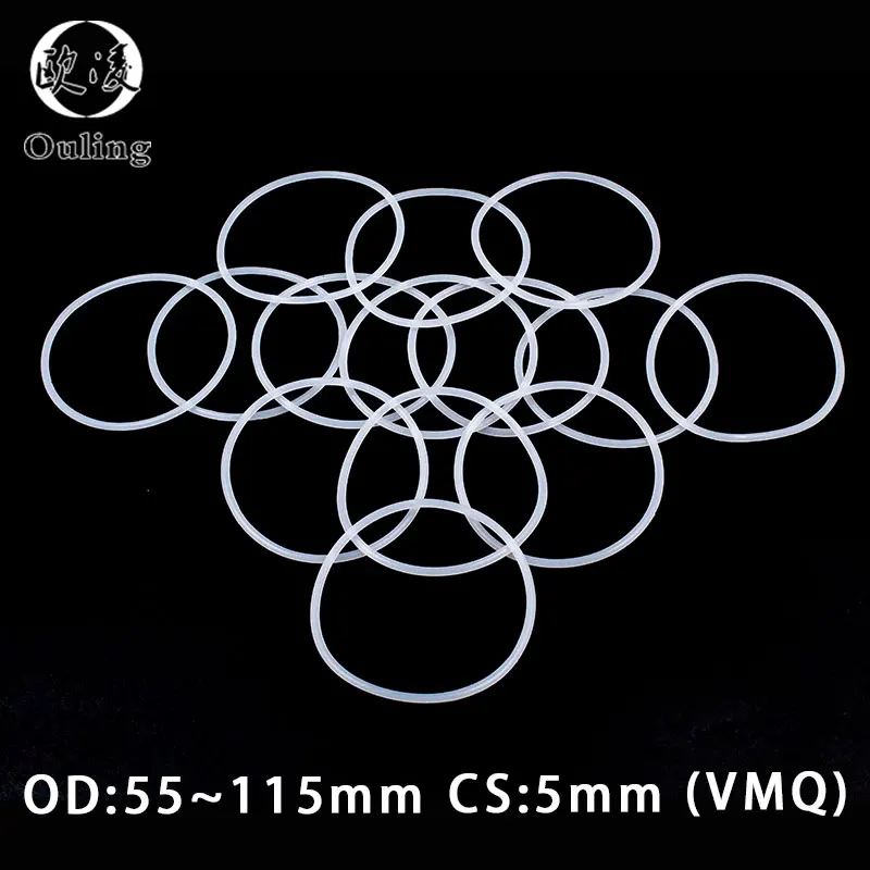 Белое Силиконовое уплотнительное кольцо VMQ, толщина 5 мм, OD556065707580859095100105110115*5 мм, резиновое уплотнительное кольцо, прокладка, шайба