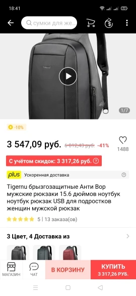 Оказался рюкзак Tigernu T-B3599, отличное приобретение!