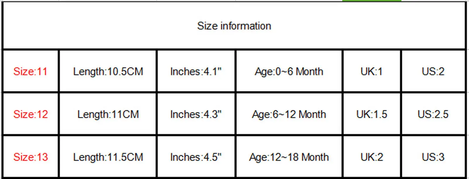 Примечание: Пожалуйста, выберите размер по длине подошвы, возраст указан только для справки.