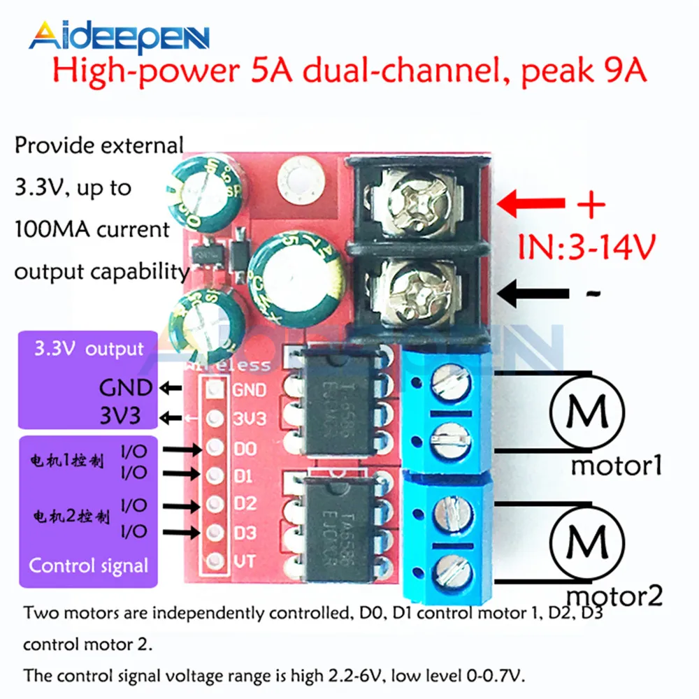 Модуль привода двигателя постоянного тока, 5 А, напряжение 3-14 в, ШИМ-регулировка скорости, Super L298N 5AD