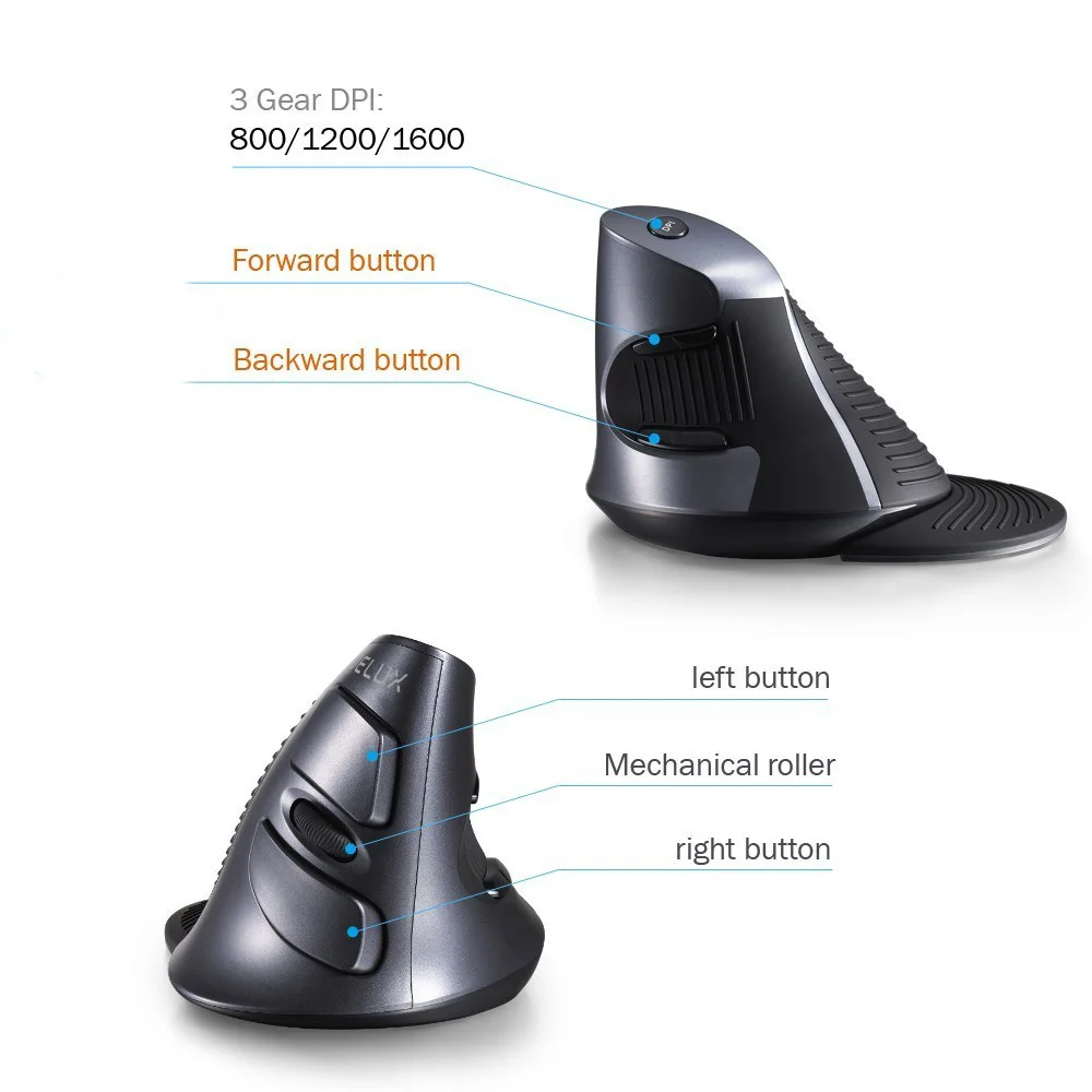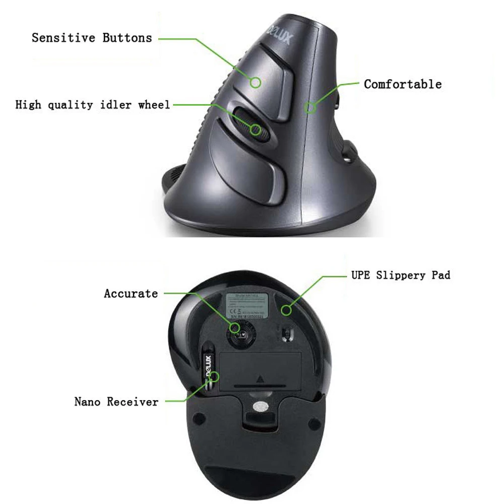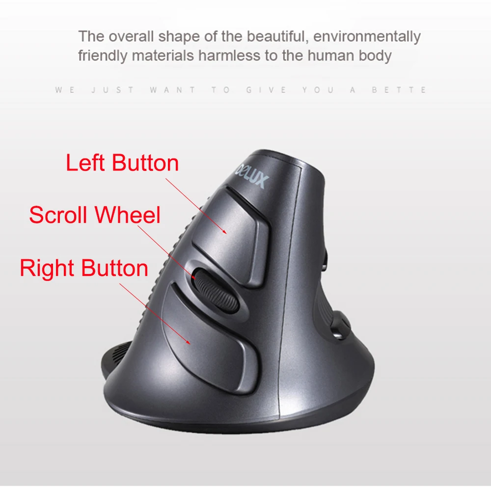 Вертикальная мышь Delux M618 эргономичная Вертикальная Беспроводной Мышь шесть кнопок 1600 Точек на дюйм USB оптическая с Съемный Упор для рук для портативного компьютера