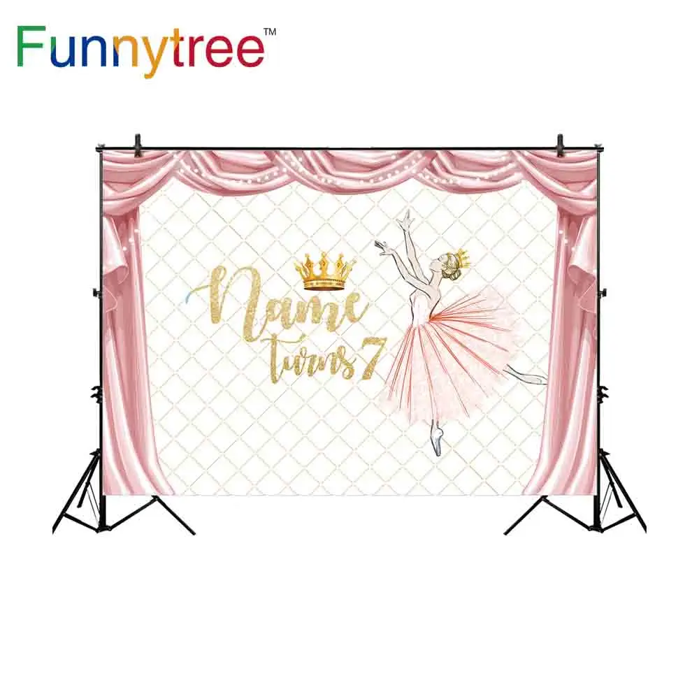 Фон для фотосъемки Funnytree розовый занавес Принцесса Корона решетка балетный танцор элегантный сценический Фотофон для девочек