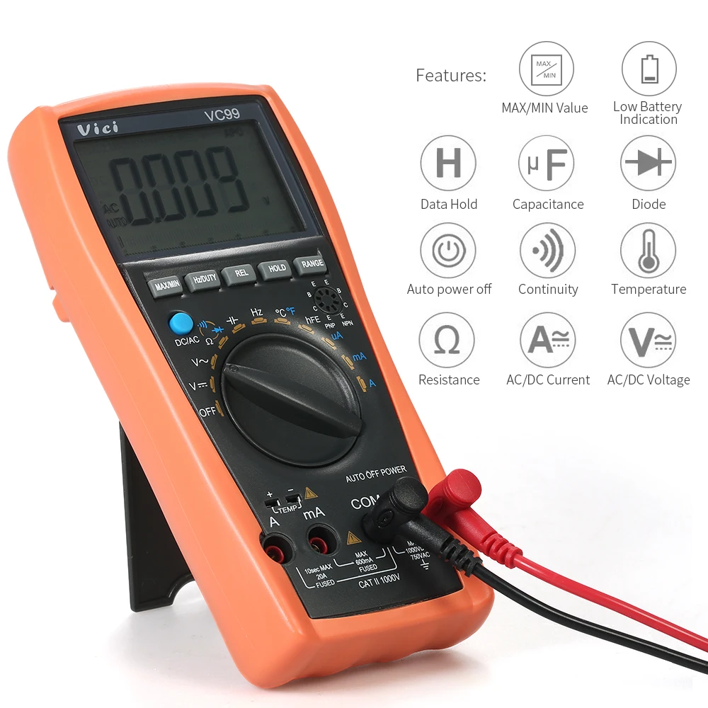 Мультиметр VC99, VC97A, новый, VC97, 1000 В, цифровой мультиметр постоянного тока, переменного тока, Автоматический диапазон температура мультиметра, измеритель тока, емкости, сопротивления диода