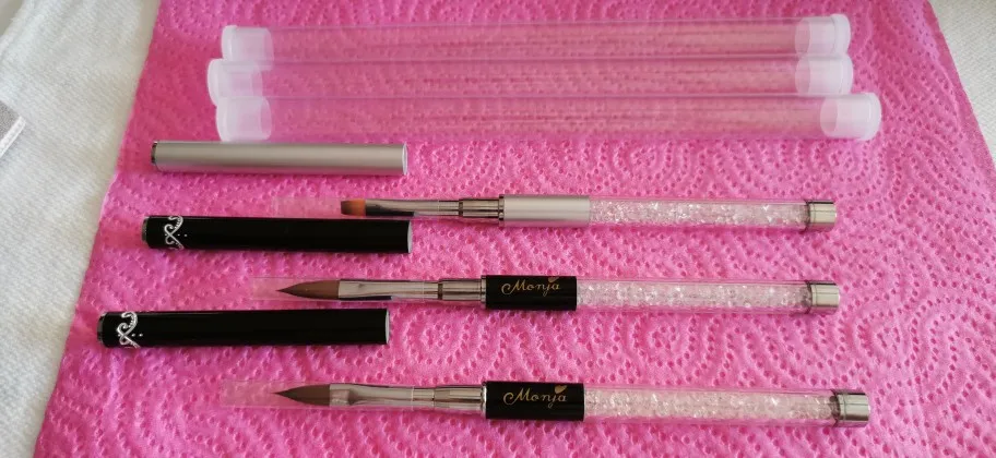 эти кисточки мои фавориты. крупная ручка - я люблю, колпачок идеально подходит, наживается туго, плотно. форма и размер ворса идеальны для ногтя. спасибо продавцу, эти кисти в отличие от многих других, взятых на пробу у других продавцов на али, буду брать еще.